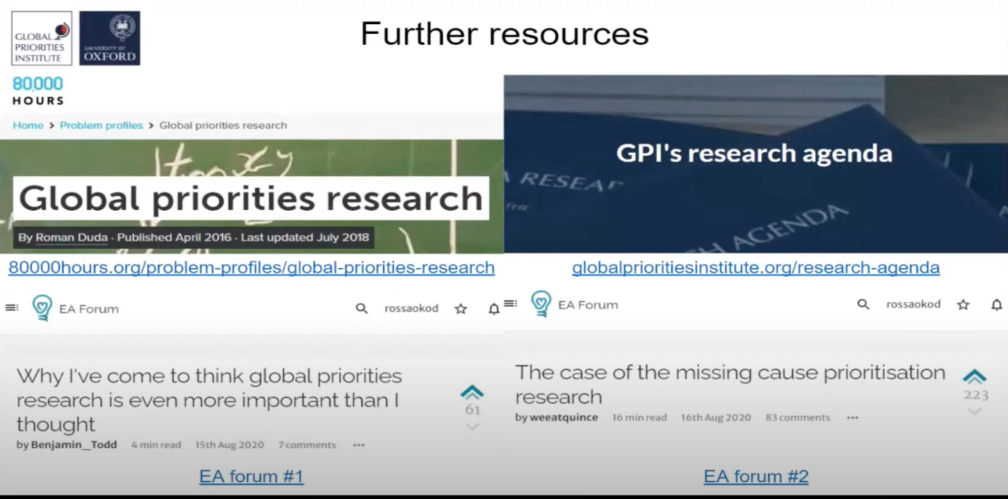 Those are two different definitions. But there are other organizations that have a slightly different definition of global priorities research. And we’re going to spend the first few minutes talking about my own views about what global priorities research is — and what it isn’t.