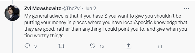 Ben also disagreed with the math that there was lots of opportunity, linking to his post A Drowning Child is Hard to Find.