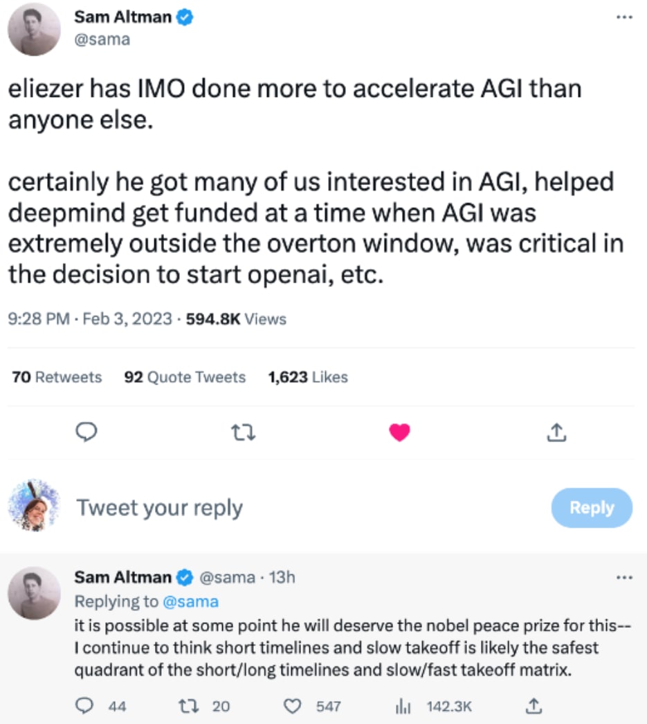 The AI safety movement started from Eliezer Yudkowsky and others on the SL4 mailing list discussing (and aiming for) an intelligence explosion and colonizing the universe. However, as the promise of AI has drawn nearer, visions for AI upsides have paradoxically shrunk. Within the field of AI safety, this is due to a combination of the “doomers” believing in very high existential risk and therefore focusing on trying to avoid imminent human extinction rather than achieving the upside, people working on policy not talking about sci-fi upsides to look less weird, and recent progress in AI driving the focus towards concrete machine learning research rather than aspirational visions of the future.