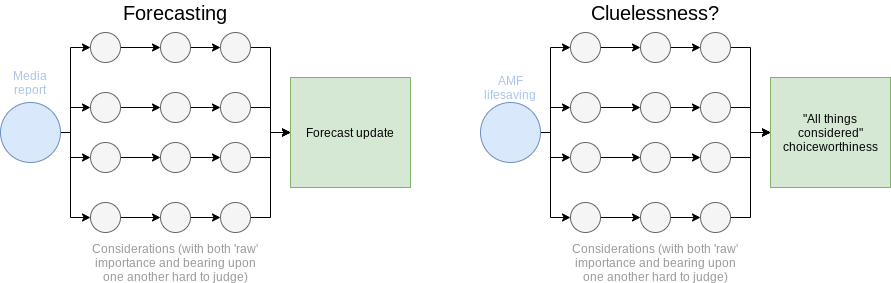 Andreas Mogensen, in subsequent work (Mogensen 2019), goes further, suggesting this is a ‘Naive Response’. Our profound uncertainty across all the considerations which bear upon the choice-worthiness of AMF cannot be reasonably summarized into a precise value or probability distribution. Both Greaves and Mogensen explore imprecise credences as an alternative approach to this uncertainty.
