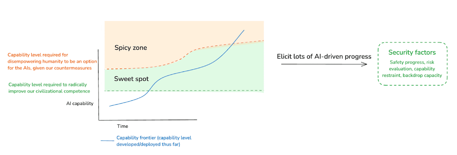 Now: one way to avoid this problem is to focus on restricting the rogue options of less-than-superintelligent AIs. Thus, recall my discussion of the “AI for AI safety sweet spot” – that is, AIs unable to disempower humanity given our countermeasures, but still able to radically improve our civilizational competence. It may be possible to use environmental control to put fairly human-level-ish AIs in this kind of sweet spot – and then to use them to vastly improve the situation from there (and including: in a manner that allows us to rely less on option control going forwards).[18] And because the capabilities of these human-level-ish AIs are more limited, the superhuman strategies they might pursue are more limited as well. Indeed, if all such strategies are at least detectable by humans, the superhuman strategies problem as I’ve framed it goes away.