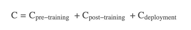 ) is the bulk of the total (including C ≫ C + C, there are some simple approximations for the costs of scaling. If , then scaling pre-training by 10x increases costs by nearly 10x, while scaling inference-at-deployment () by 10x doesn’t affect the total much. Whereas if , then scaling pre-training by 10x increases costs by ~3x (from the larger number of parameters needed at deployment), while scaling inference-at-deployment by 10x increases costs by nearly 10x. So there is some incentive to balance these numbers where possible.