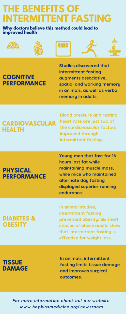 See The Benefits of Intermittent Fasting sidebar from Johns Hopkins Medicine on page 4 of this memo, which summarizes benefits to cardiovascular health, cognitive performance, and other endpoints associated with IF