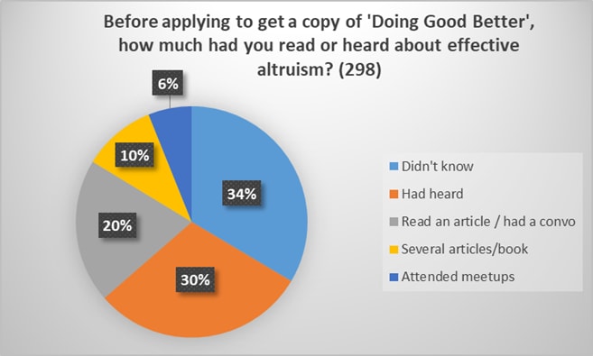 As we would expect, the majority of people who received the book had heard little to nothing of EA before applying for the giveaway.