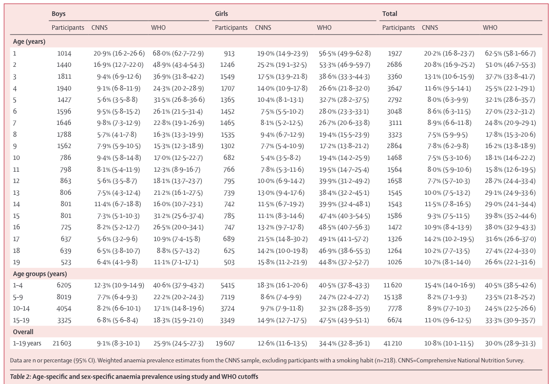 Haemoglobin thresholds to define anaemia in a national sample of healthy children and adolescents aged 1–19 years in India: a population-based study, The Lancet, 2021 - https://www.sciencedirect.com/science/article/pii/S2214109X21000772