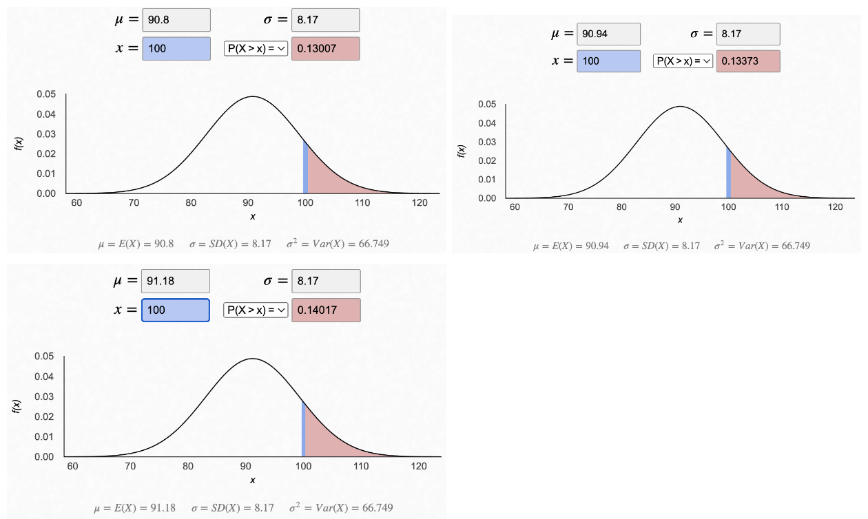 I tried to roughly estimate how shifting a normal distribution of FBS from mean 90.8 to mean 90.94 or affects the proportion above the 100mg/dL threshold they set for prediabetes (they mention overall sample had 13% prevalence, so I used that to derive σ=8.17) using Matt Bognar’s tool.