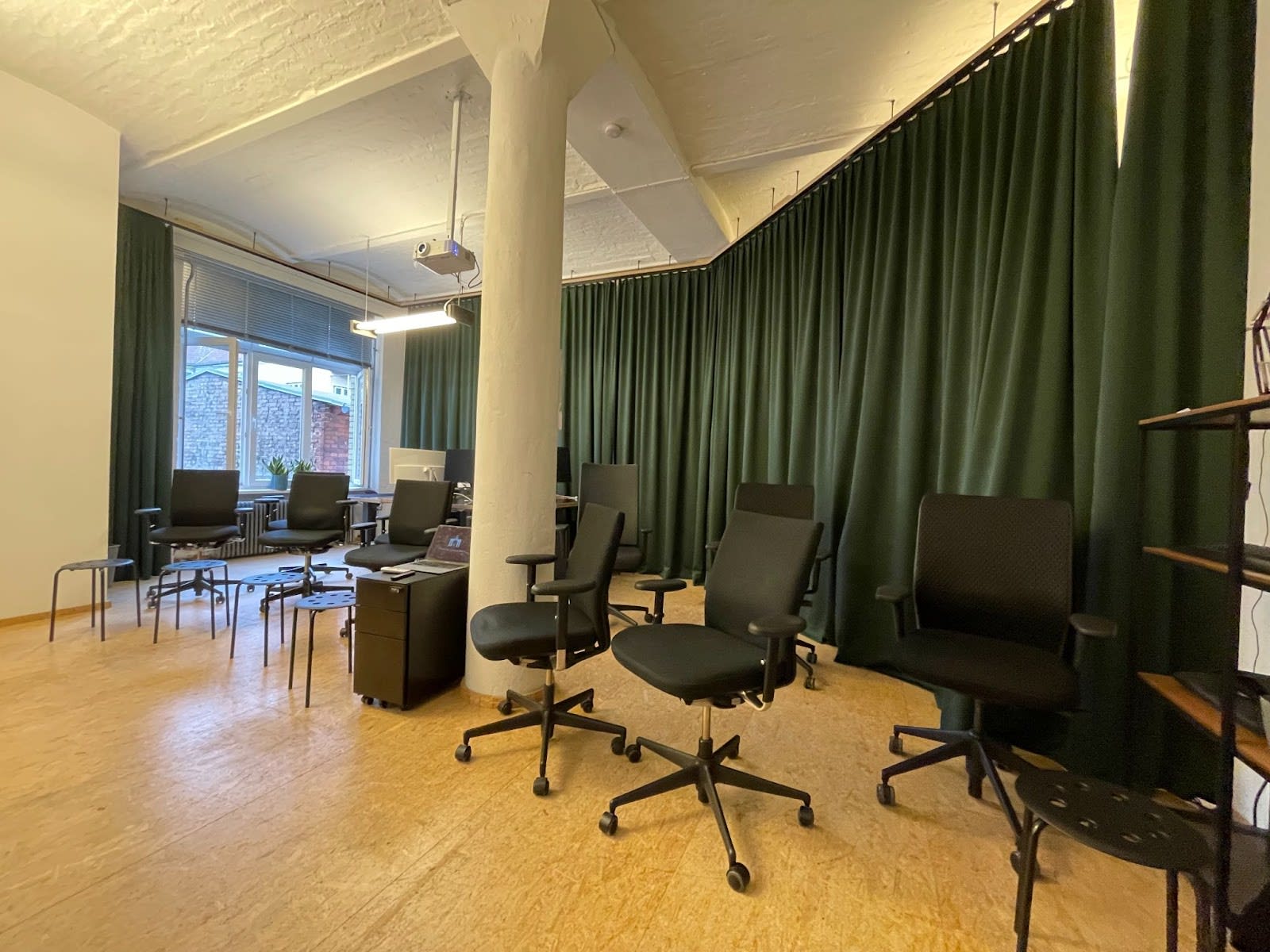 Co-working Offices: One large office with 11 desks and a smaller office with four desks. The smaller office is also bookable for team retreats or team co-working, while the big office can be transformed into an event space for up to 40 people.