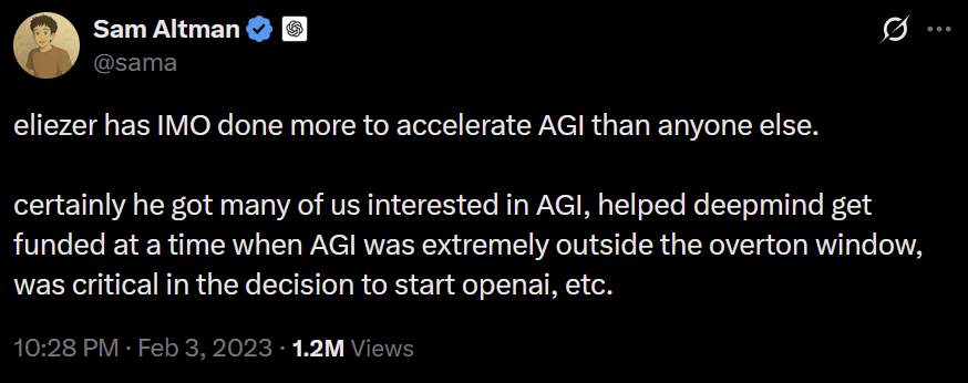 One can attempt to seed and spread viral ideas that change one’s way of thinking about the world. Through cultural dissemination, these can reach researchers and decision makers at AI companies and influence their decisions and actions. Eliezer Yudkowsky, chief doomer and elite meme spreader, is a great example of this. His work was mostly impactful by popularising the idea that superintelligent AI could spell doom for humanity. Some actors are trying to create more of this by providing prizes for new memes.