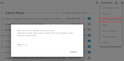 As our About page notes, we don’t think posts need to be polished in order to be worth publishing. We want the EA Forum to be a place where people can explore ideas, even if they haven’t accounted for every consideration or counterargument. Our hope is that the Shortform interface will encourage more of this exploration.