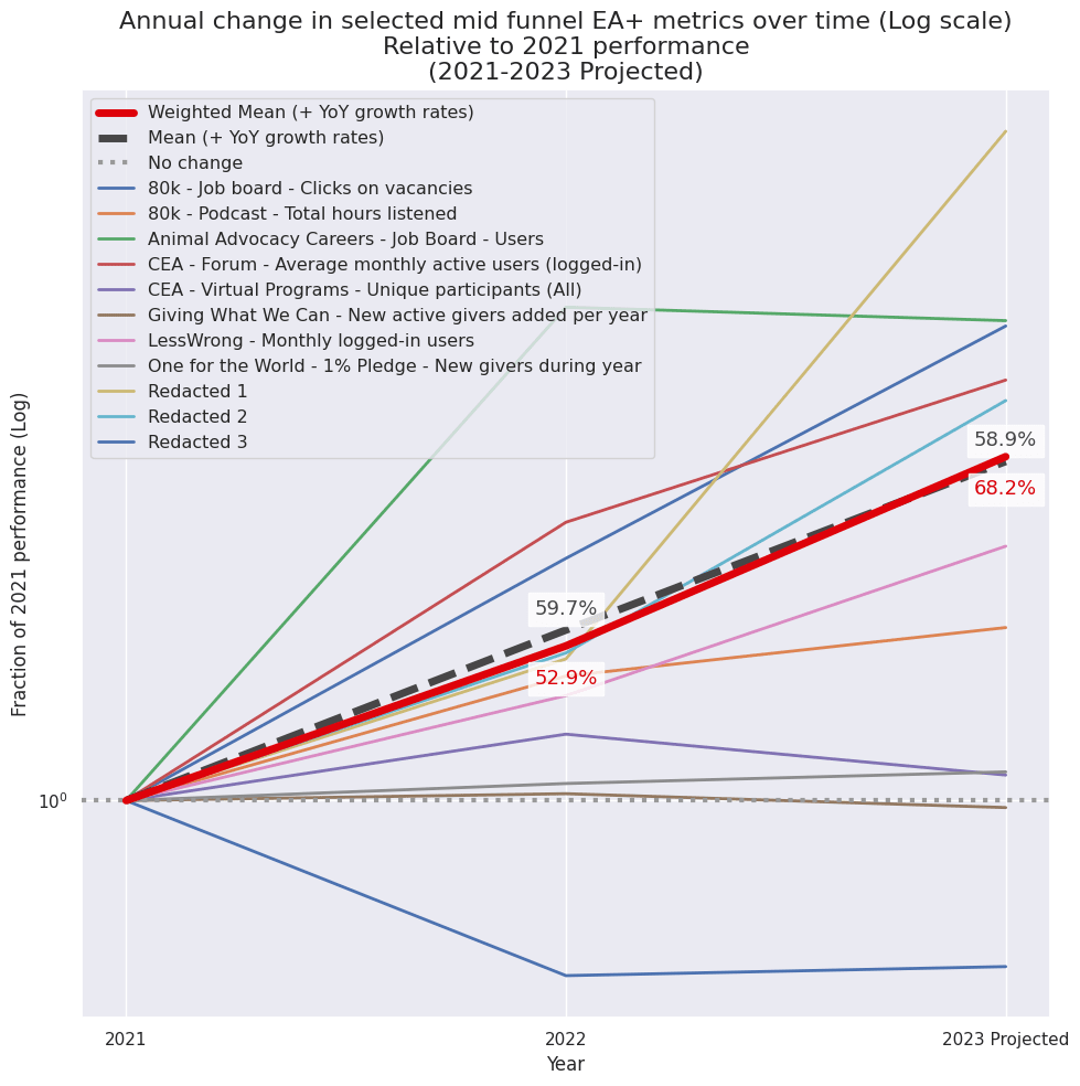 And then applied a subjective adjustment on top of this to account for some metrics being more informative to tracking EA growth rates