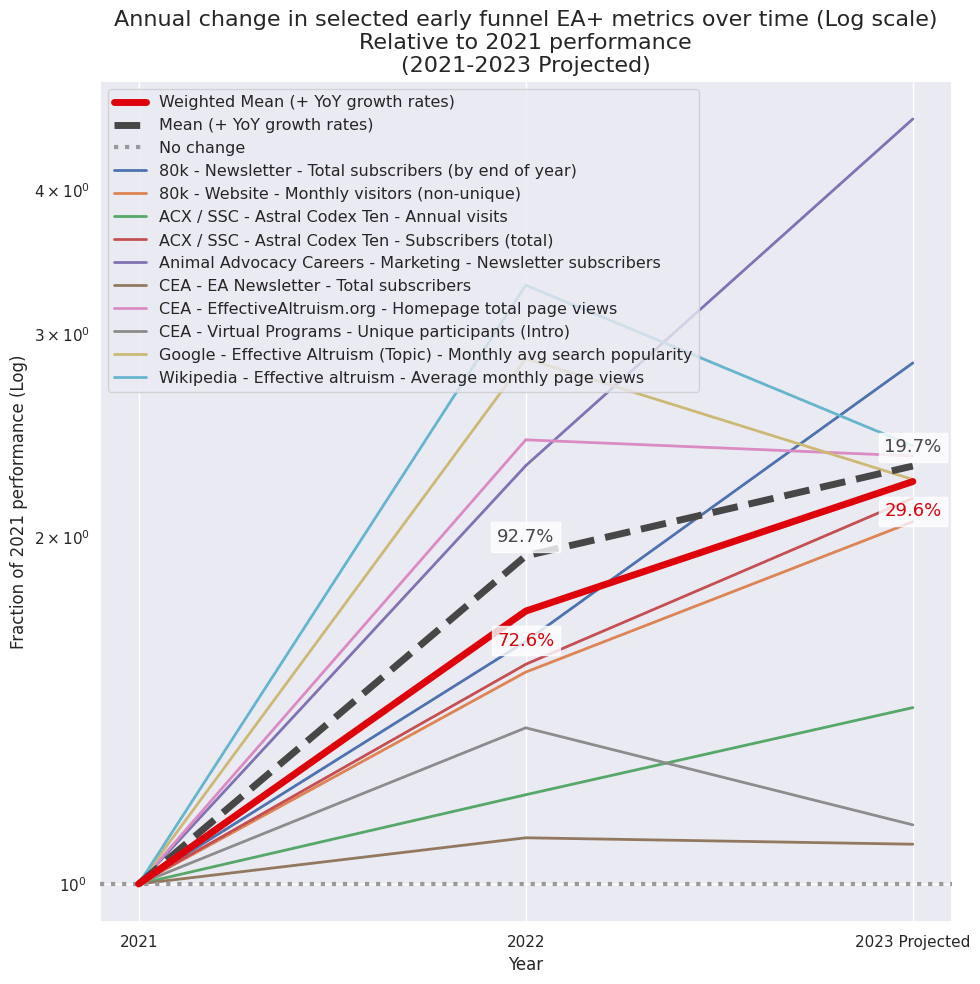 e.g. I expect the change in visits to ACX over time is much less informative than # visits to the EA.org website, since the latter is much more directly about EA.
