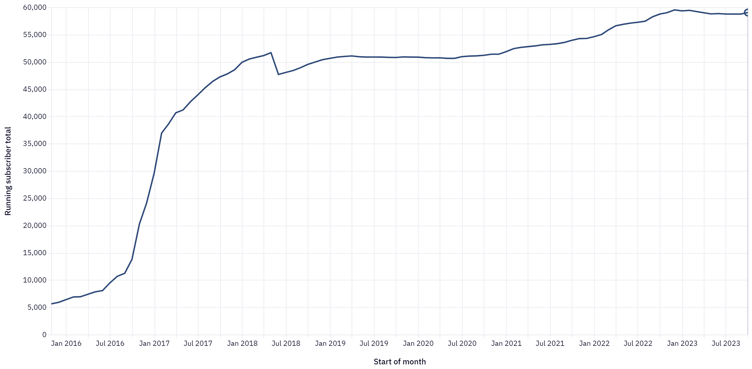 Overall EA Newsletter subscriber count (at the start of each month):