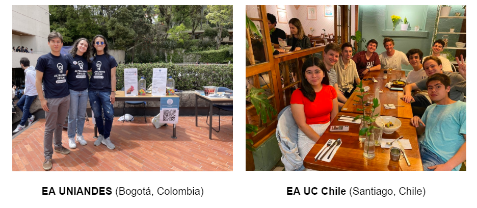 They have run ~40 cohorts of the online introductory fellowship to Effective Altruism in Spanish, reaching ~150 people. This led, among other things, to the establishment of two university groups in Bogotá and Santiago, thanks in no small part to the initiative of Alejandro Acelas, Laura Arana, Agustín Covarrubias and David Solar.