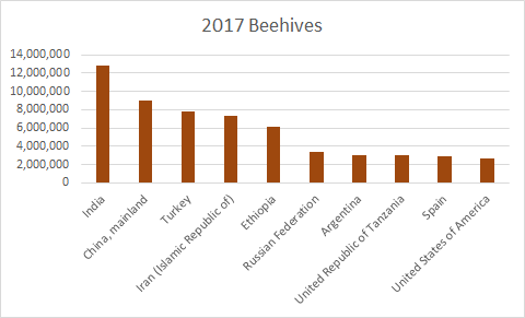 Figure 5: Beehive Top Producers, 2017 (source: FAOSTAT)