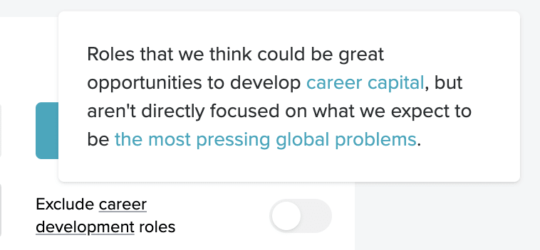 I’d rather all roles be summarised in one place for simplicity. If people are concerned about not knowing which roles are for career capital vs direct impact then 80K can signpost that—which I think I am in favour of. I’m not sure why removing the career capital roles would be the better approach—I think it would be a loss of value.