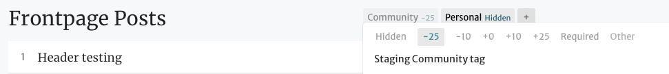 While “Personal Blog” posts will still exist separately from “Frontpage” posts (because they don’t show up on the front page of the Forum), “Community” is no longer its own category. Instead, we have a “Community” tag which acts like any other tag; you can choose to filter it however you see fit from the front page.