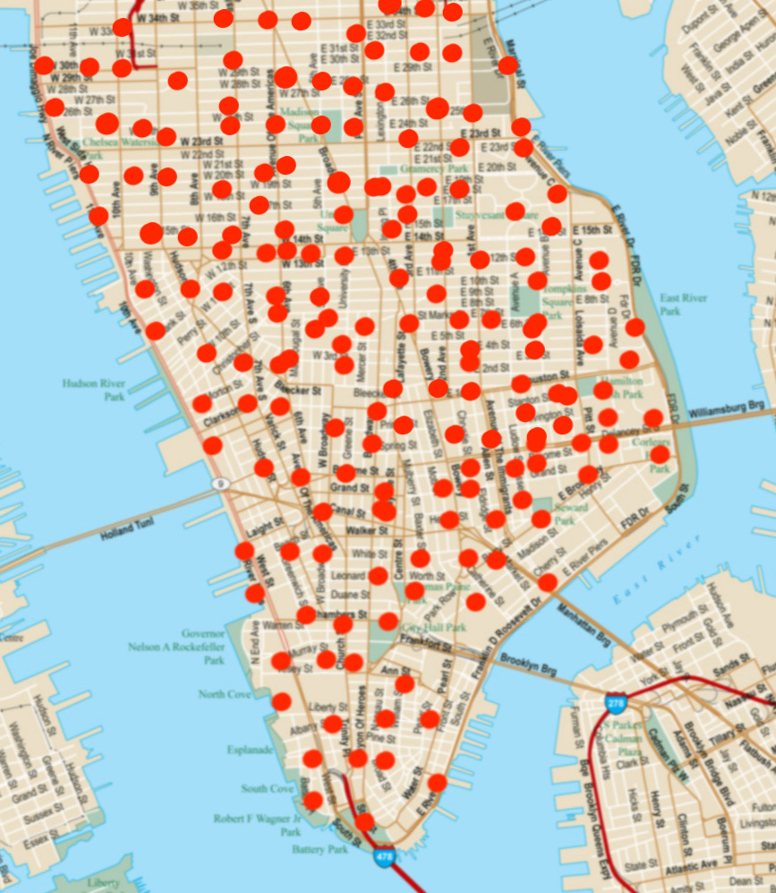 I was going to do all of New York but my hand started hurting from making all these dots, so I only managed the tip of Manhattan.