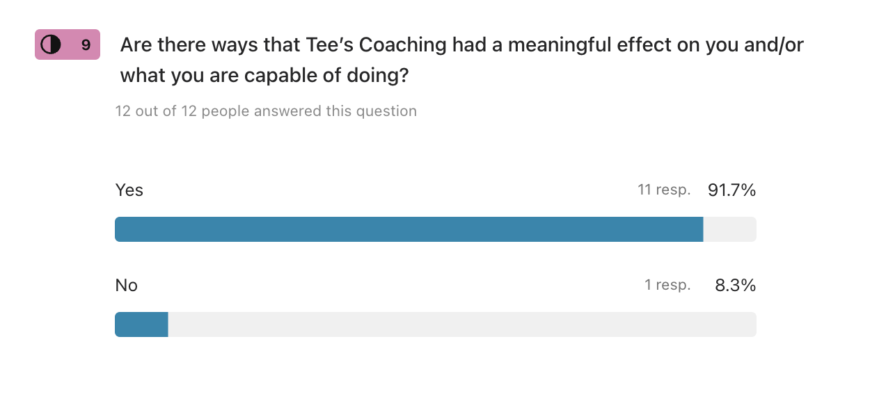 Are there ways that Tee’s Coaching had a meaningful effect on you and/or what you’re capable of doing?
