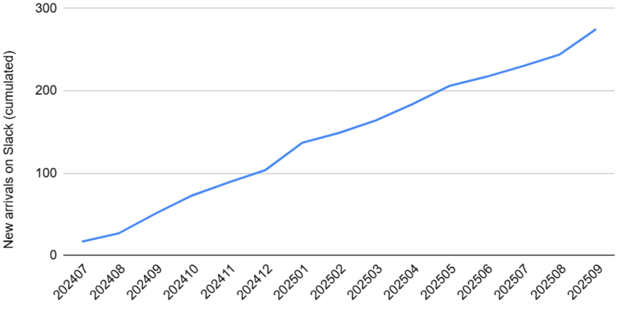 | Activity and newcomers on Slack | Small positive effect |