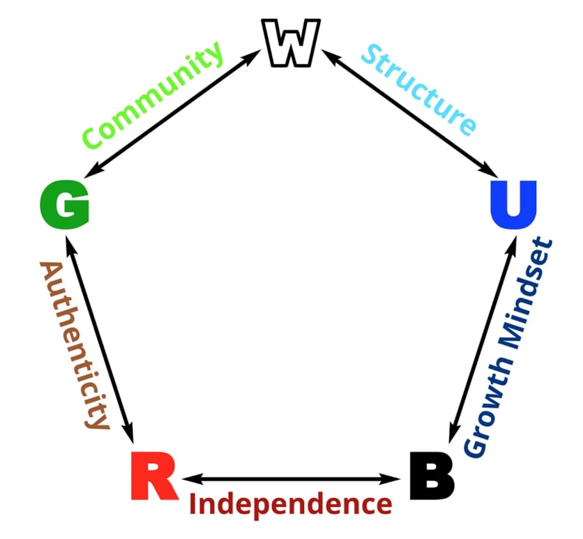 Here, though, I’m not going to focus on the particulars of Sabien’s (or Rosewater’s) presentation. Indeed, my sense is that in my own head, the colors mean different things than they do to Sabien/​Rosewater (for example, peace is less central for white, and black doesn’t necessarily seek satisfaction). And part of the advantage of using colors, rather than numbers (or made-up words like “Hufflepuff”) is that we start, already, with a set of associations to draw on and dispute.
