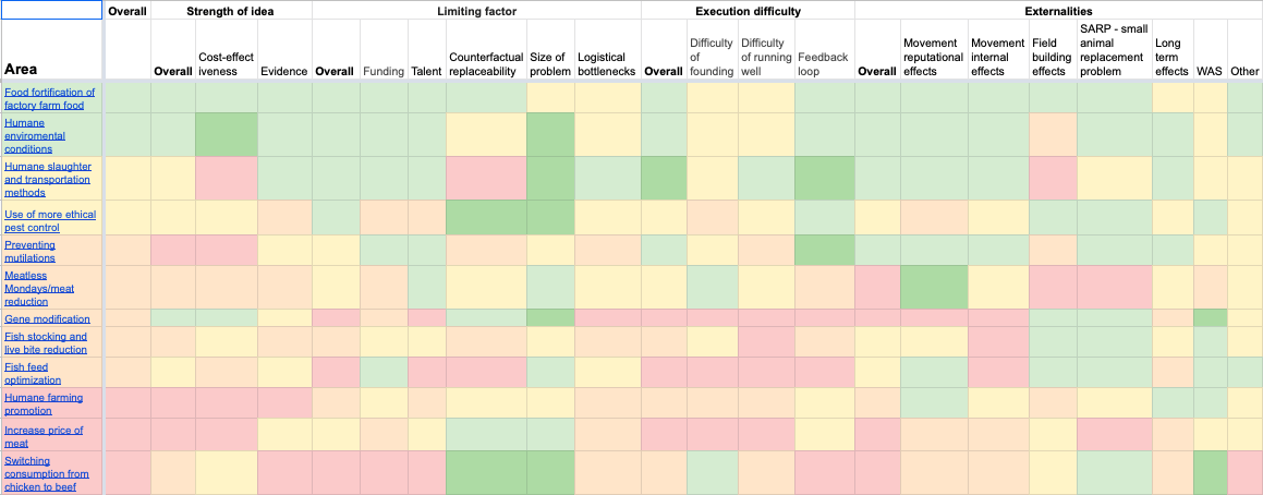 This does not mean that we think that the top charities will necessarily do these specific asks, for it could be that a very strong approach, such as food tech, does not fit well with any of the above asks and is instead executed in a different way.