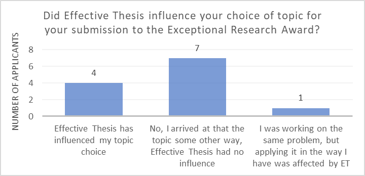 We have asked all students in the voluntary feedback form (that was shared at the time of the results announcement) whether Effective Thesis influenced their topic choice for their submission.