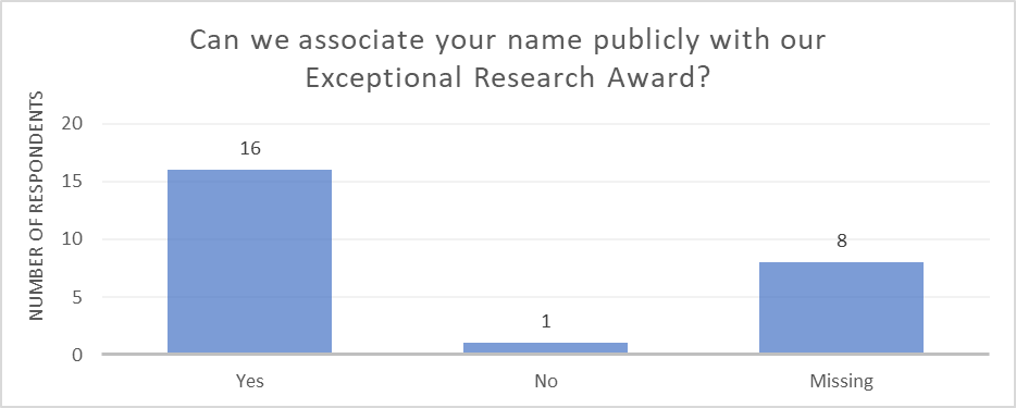 17 out of 24 reviewers provided feedback on our review process. The general impression we received was that reviewers were happy to have been part of the review process for our Award. This impression is supported by their high willingness to be publicly associated with the Award (see below).