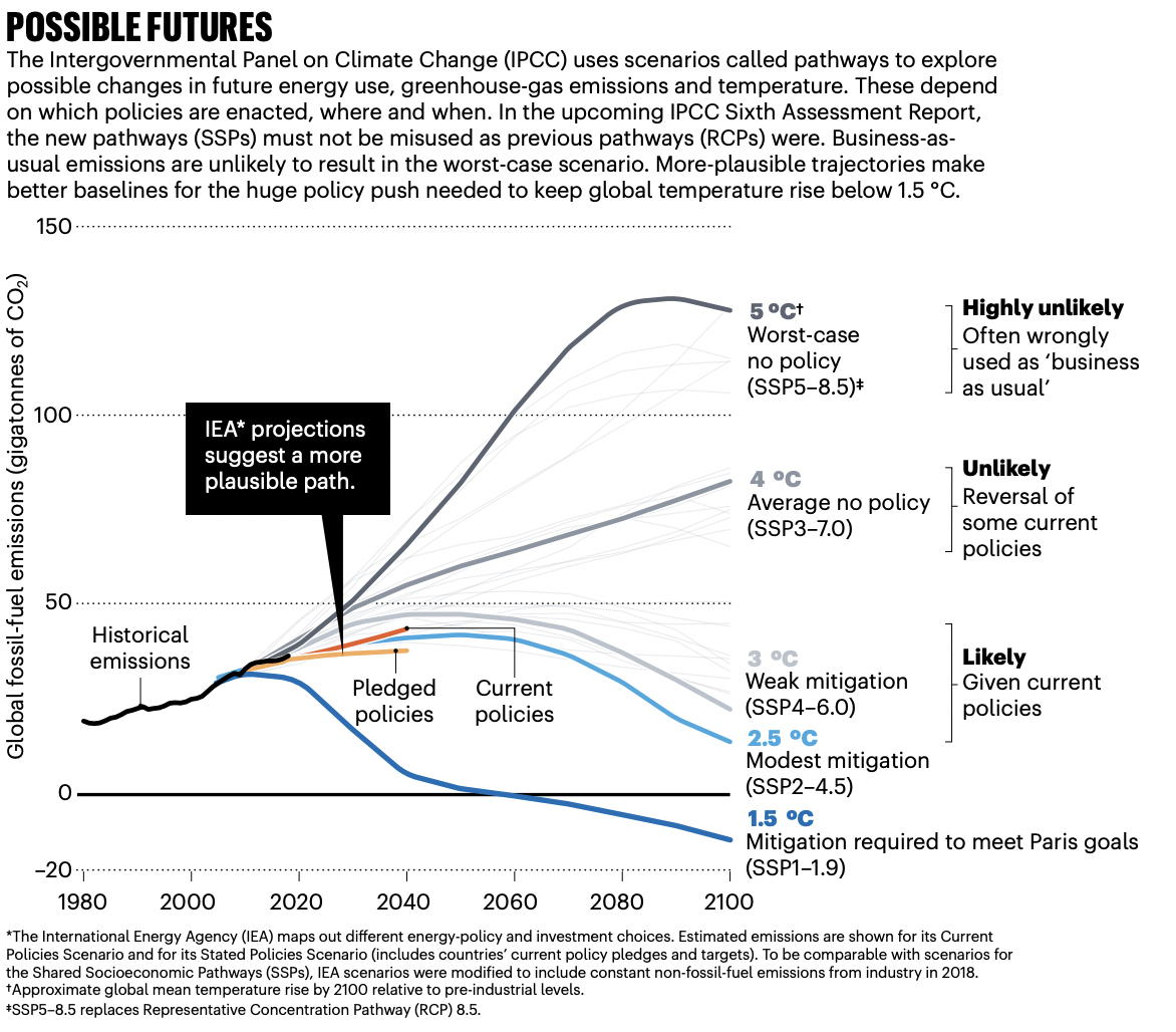 Hausfather and Peters, ‘Emissions – the ‘business as usual’ story is misleading’, Nature, 2020.