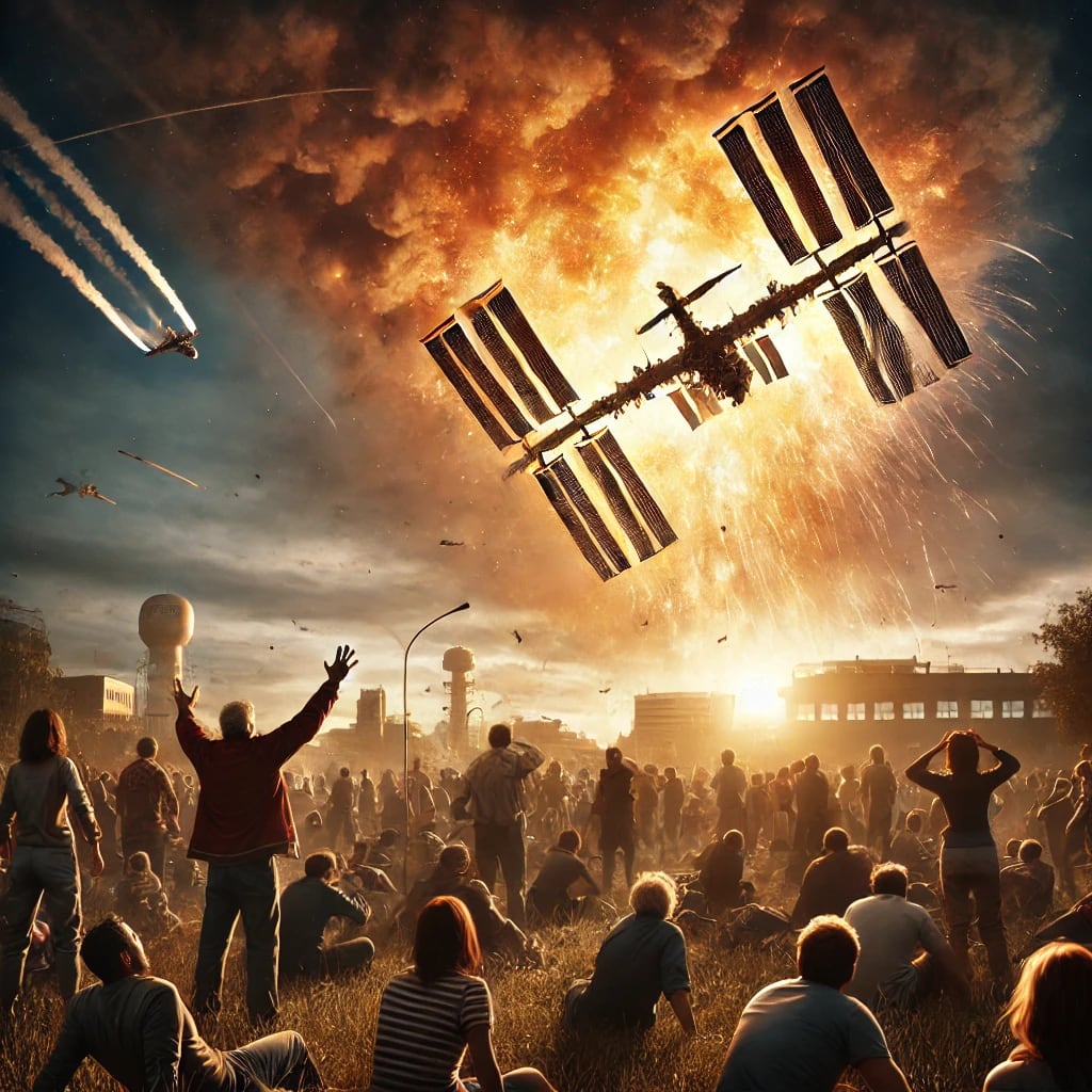 Also the ISS is also already well within Earth’s atmosphere, and the lower it gets, the shorter the life of debris hitting it would be due to atmospheric resistance, and it would presumably be relatively easy to control it from hitting anything near the start of its descent, when you can choose when to start the process and only run serious risk as it started to lose control 0 in the lower, thicker atmosphere.