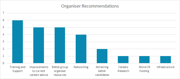 The top three suggestions organisers had were training and support, improvement to current careers advice and better group organiser resources. (More)