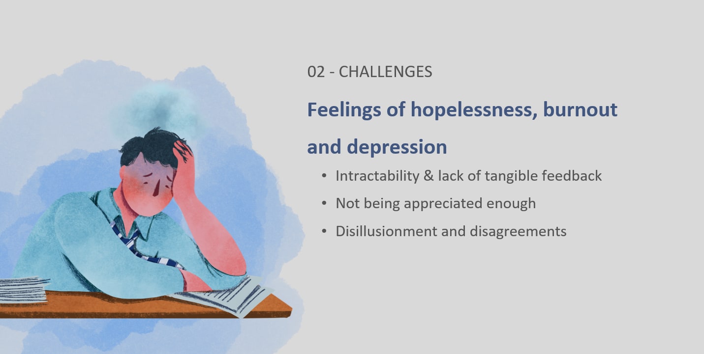 Feelings of hopelessness, burnout and depression
