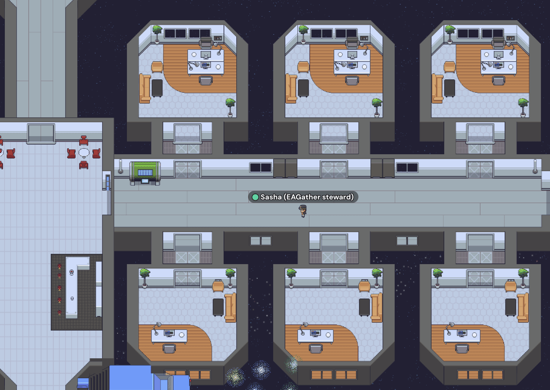 (we neither pay nor are paid for this space, and aren’t affiliated with either Gather Town the company or with Anima—we build and use the EA Gather for the love of what it currently is and what we want it to grow to be for the EA community)