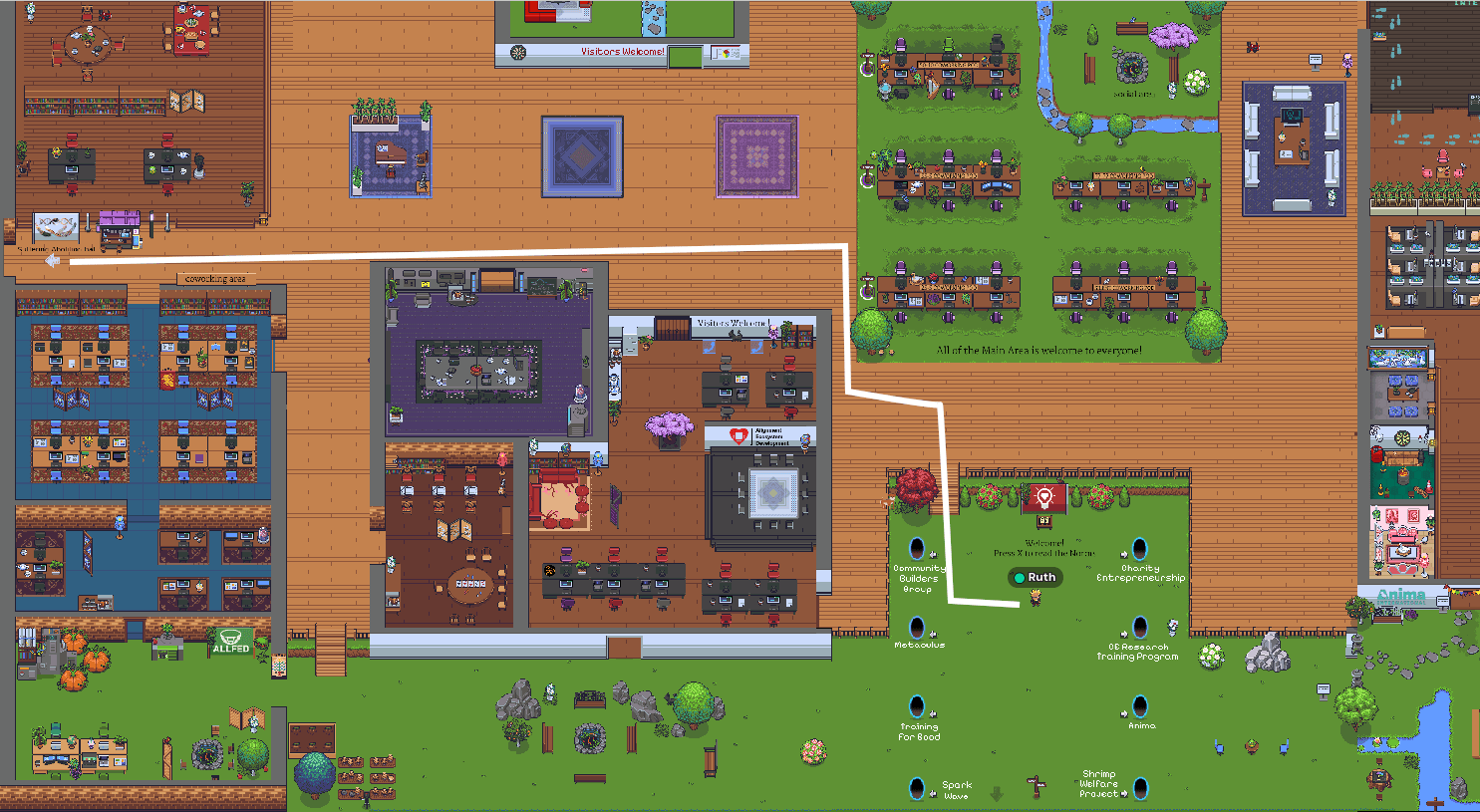 1. The first 10 min people have time to navigate, get our support if needed and gather in the meetup area of the Suffering Abolition hall.