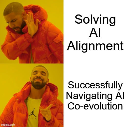 This doesn’t mean we should abandon alignment research. We absolutely need the best alignment techniques possible. But we should be clear-eyed about what success looks like: not a solved problem, but an ongoing, never-ending process of negotiation, adaptation, and correction. Perhaps given the misleading nature of the current nomenclature, using a different phrase such as Successfully Navigating AI Co-evolution would better capture the dynamic, relational, and inherently unpredictable nature of integrating AGI successfully with humanity.