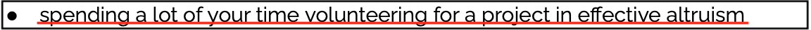 I stated I became a physician based on the EA dogma of “Earning to Give” (ETG) the time, which took 9 years of my life to see to completion. I didn’t elaborate more because I figured that would be sufficient for this criteria.
