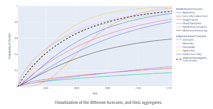 Epoch produced a summary of influential models and forecasts predicting when transformative AI will be developed: