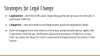 I won’t go through all of these conditions under which norms and behavior shifting seem more powerful, but some of these I think are particularly important for our purposes here. So, the law can be more influential on norms and behavior when, number three, individuals’ personal views are closer to the new normative information, which I think points positively in favor of a goalpost shifting strategy, which starts with more low hanging legal fruit. When we update society’s morality in a direction that’s favorable to the rights of nonhuman animals, we can then pursue increasingly more progressive legal initiatives. Taking people’s personal views iterated closer and closer to the more progressive legal wins. For when new normative information is widely shared, which I think suggests the importance of mass media mobilization surrounding legal campaigns, and six, when political movements coexist to mobilize individuals following a decision, which I think suggests the importance of large amounts of grassroots mobilization around legal initiatives.
