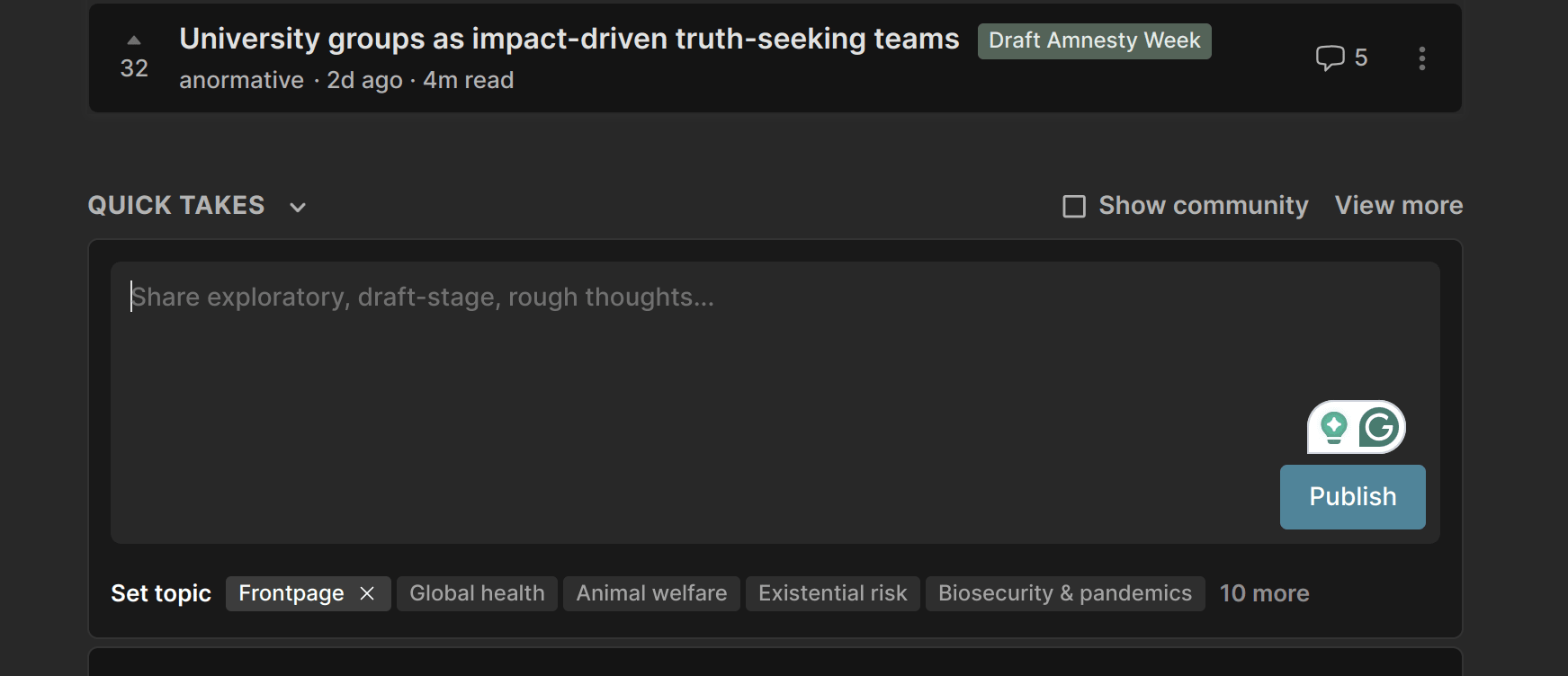 Hi alene! I think very few people will see this comment on a post from 6 years ago. You might have more luck posting this as a quick take (on the homepage, below the posts)