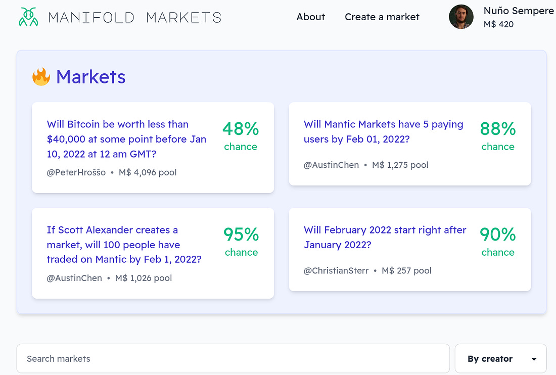 A new forecasting platform appears, Manifold Markets