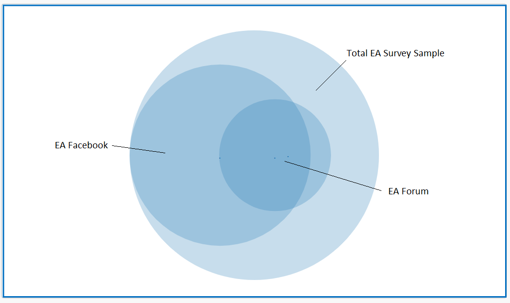 EA Facebook and EA Local Groups were the two groups with the largest membership within our sample and while there was substantial overlap, many EAs who were members of EA Facebook were not members of a local group and vice versa.