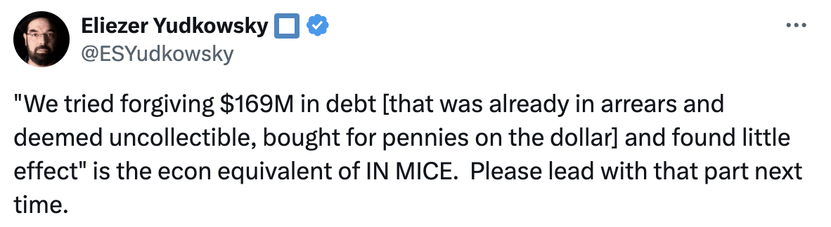 I like Eliezer’s tweet on this