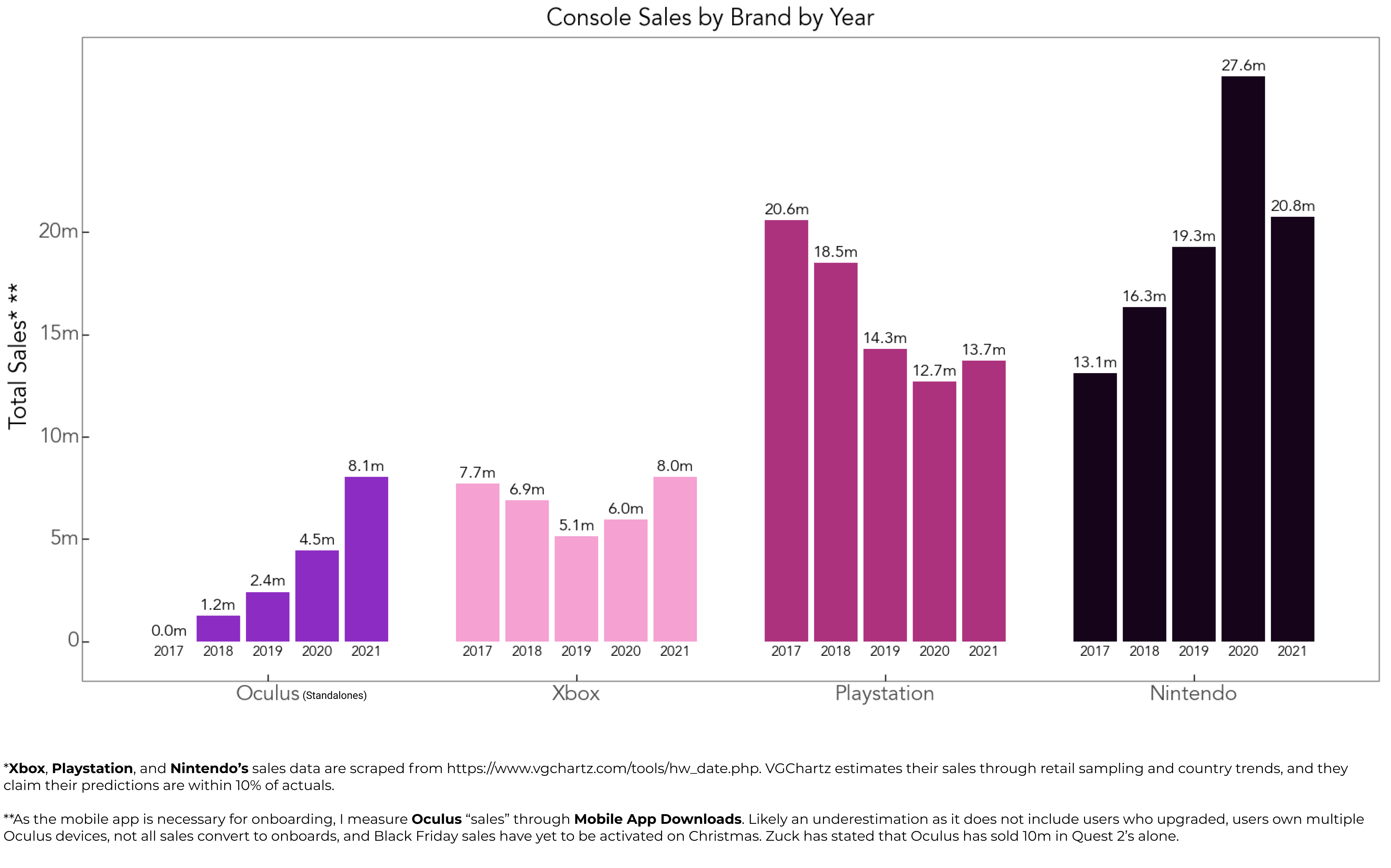 Why VR? VR is a rising technology, and I believe will likely be massively adopted within the next 4-10 years. In 2021 it is estimated that more Oculus VR headsets were sold than Xboxs. Imagine when the first smartphones were coming out, or when personal computers and websites were first becoming popular. Developments in the VR space now could have big effects on what it becomes.