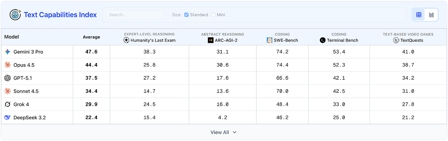 Google’s Gemini 3 Pro is now the strongest frontier system on nearly all general-purpose capability benchmarks—but trails other frontier systems in safety. Anthropic’s new Claude Opus 4.5 is close behind in capabilities but topped the frontier rankings in safety.