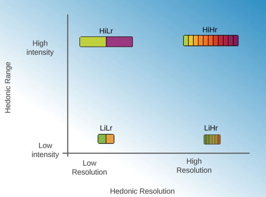 For simplicity, we will henceforth refer to ‘Range of Intensity’ and ‘Resolution of Intensity’ as simply ‘Range’ and ‘Resolution,’ respectively (in related terminology, our “resolution” overlaps strongly with evaluative acuity as used by Birch, Schnell, & Clayton (2020)).