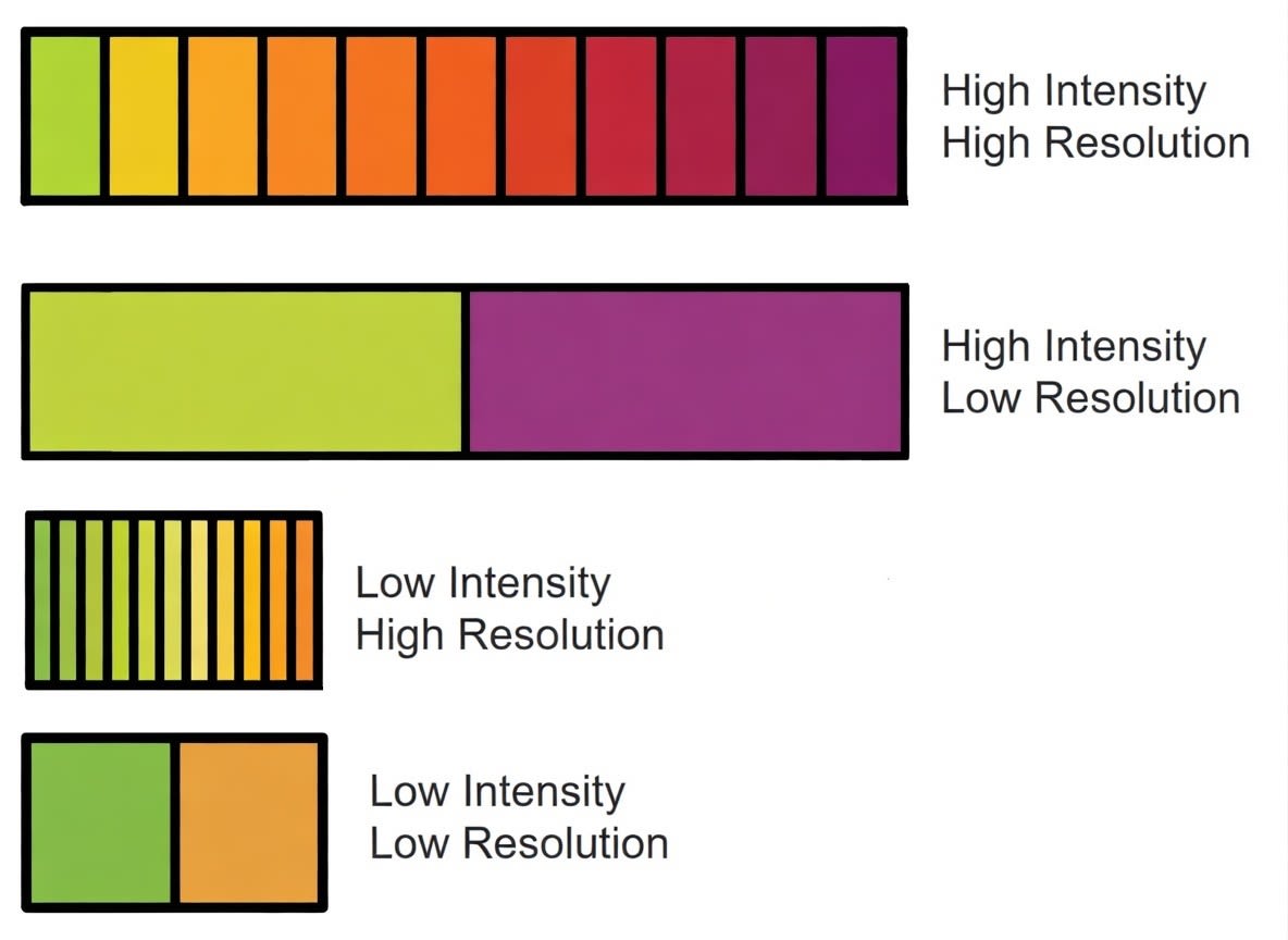Important Clarification: Higher intensity can sometimes act as a proxy for higher resolution, since a wider range of possible intensities can create finer distinctions in behavioral output. However, intensity alone does not explain how organisms modulate their responses within that range—which is the key question when distinguishing resolution from raw intensity.