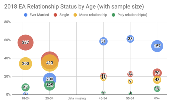 Itās a reasonable question. I take the observation to be that 60% of EAs over 45 have married, where weād expect 85%.