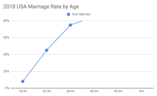 For comparison, hereās 2018 ACS data (via) for US marriage rates, on the same scale: