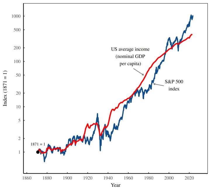Index funds are a reasonably good correlate of important welfare metrics like GDP per capita, especially over the long term.