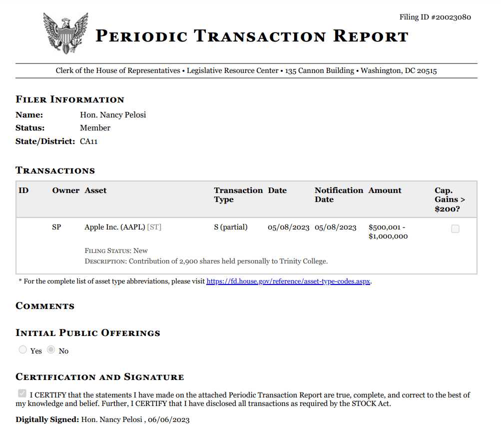 You can see her financial disclosures here. Here’s an example from 2023