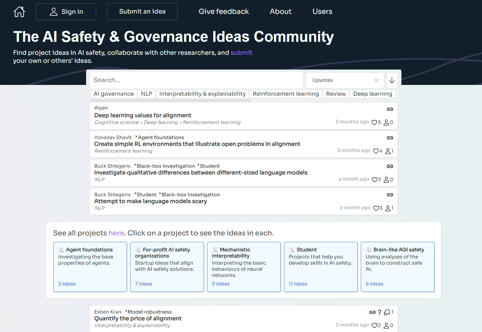 (I don’t know anything about AI safety or longtermism) but just to repeat the discussion above, this site looks great looks great.